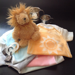 Any groovy mommy would love to receive a DIY Dyed Baby Onesie at her baby shower. This homemade baby shower gift takes little time. Just follow this tutorial by The Rit Studio. Start with a plain onesie and transform it into the perfect onesie for a future hippie. The bright colors and tye-die look of the Rit dyes creates a psychedelic design. Make your DIY baby onesie unique by adding a stenciled outline of your choice, like a sun. This cute onesie will look adorable on your new little friend.