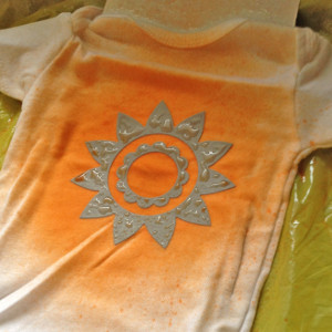 - Cover work area. Insert cardboard inside onesie to prevent bleed through when dyeing.
