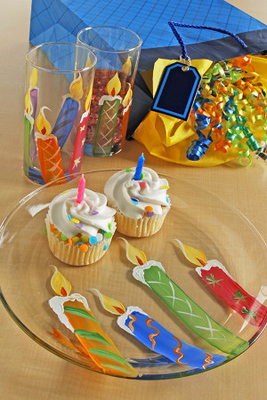 This Happy Birthday Glassware would make a great addition to your collection of party supplies. You will be able to use this fun platter and the matching glasses all year round for each birthday in your family. This birthday craft is a fun and functional painting project that your family will be sure to love. This hand-painted set would also make a great birthday gift for your family, friends, and neighbors.