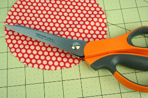 To add some fun flair to your jars for gift giving, trace the outer ring of the smallest circle in the Supersized Circle Template set onto the backside of a coordinating piece of fabric. Cut out along your traced line using pinking shears.