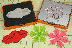 Create labels for the front of your jar using your Fuse Creativity System along with Medium Design Set 0111 and Medium Design Set 0191. Create two snowflakes from Medium Design Set 0111 using two different colors of cardstock. A darker ink of the same color cardstock gives depth to your piece.