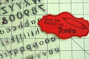 Personalize the ‘from the kitchen of:’ label using letters from the Alpha Basic stamp set mounted to your stamp block.