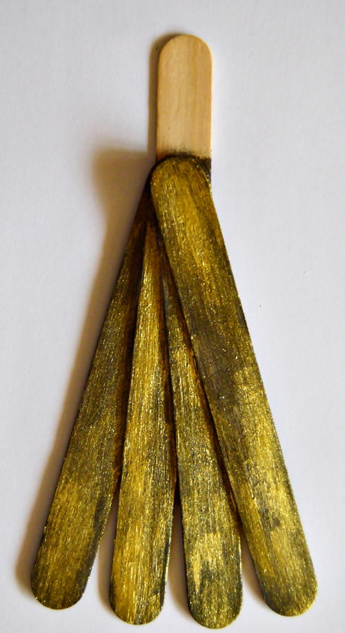Hot glue the fifth stick behind the others so that it will protrude above the end where the four sticks were glued together.