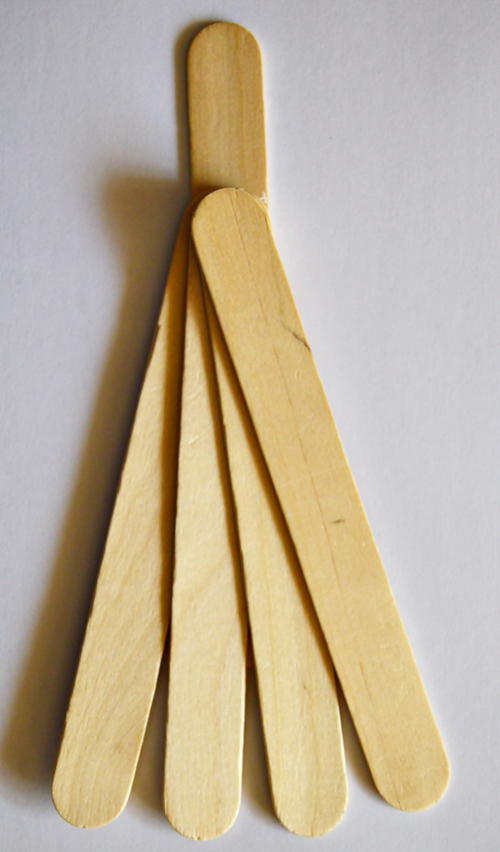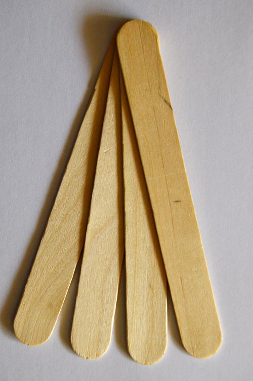 - Five 5.5" long, 0.6" wide wooden ice cream sticks