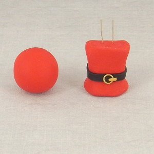 - You can now add your hat to the rest of the baked and completely cooled figure. Add Bake and Bond to the top of the head and slide the hat down onto the two wires. Gently but firmly press onto the head. Bake the entire figure.