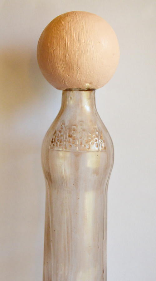 Use the knife to make an opening in the polystyrene ball. The opening must be big enough so that the polystyrene ball can fit snugly onto the bottle. Add polystyrene glue to the hole and push the ball onto the bottle. Allow the glue to dry for two hours.