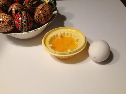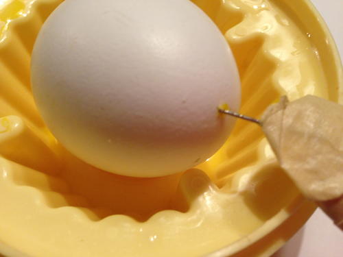 "Did you know that if you remove the egg yolk and white from the egg before you decorate it will preserve it for years to come. After shaking the egg vigorously to bread the yoke inside you use a needle to poke a hole on either end, larger on the bottom and the blow the contents out."