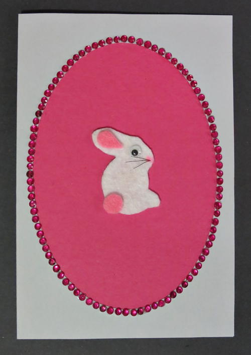 Make an Easter card with a bunny as the focus point and spread some Easter cheer. This sweet Easter bunny sits neatly in a frame made from crystal beads, and the bow beneath the bunny ensures that this friendly fella won't go unnoticed. Show your relatives that you're thinking about them this spring by sending them a DIY card for Easter. They'll love how cute the bunny is and will be impressed by your card making skills! It might be easier to just go buy a card, but homemade cards are made with love.