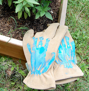 What a creative way to show off the kids' hand prints! These gloves are just too cute, you'd almost hate to use them in the yard.
