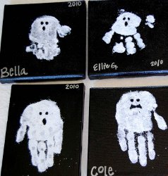 If you're looking for easy Halloween crafts that your kids can get a bit messy with, we have several projects that fit the bill. After all, Halloween is all about being a little "out there" and expressing your creativity in different ways. So for those who want fun Halloween activities that may get your hands a little bit dirty, we'd suggest taking a look at the paint-and-glitter-inspired Handprint Ghosts project (pg. 6) and the Glow in the Dark Trick or Treat Tote craft (pg. 8). Both of these easy Halloween crafts are perfect for expressing kids' creativity through hands-on projects.