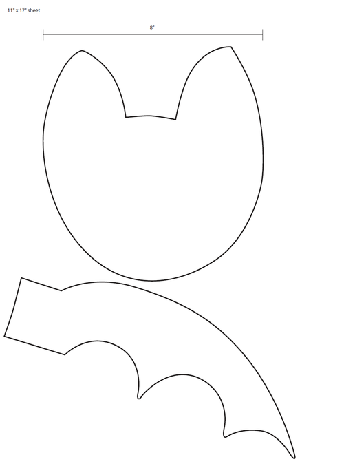 Cut out the wings from the poster board following the template. Cut out an 8” circle from the poster board as well, and cut a spiral pattern into the 8” circle. Glue the wings in place on the back of the bat.