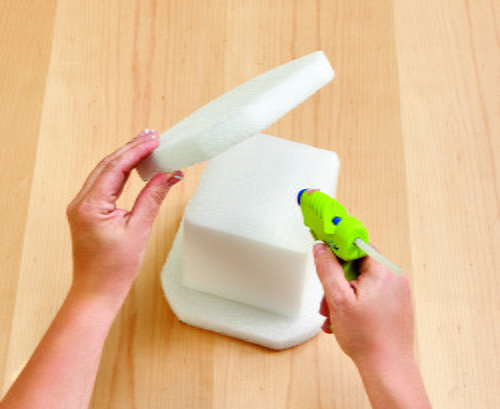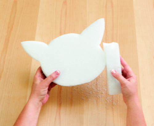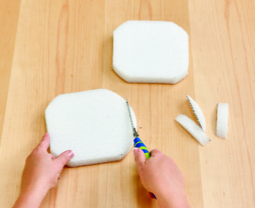 Use the scrap pieces of foam as sanding blocks to “sand” the edges of the shapes smooth and slightly rounded.