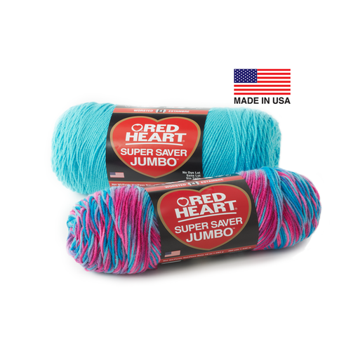 Red Heart Super Saver Jumbo is a worsted weight 100% acrylic yarn that comes in a 14 ounce skein of 744 yards. Instead of using multiple skeins of yarn now you can use just two skeins to make a crochet blanket! It's still the same Super Saver you know and love, but in a larger skein. Each Jumbo skein is the size of two regular skeins, so you'll have less ends to weave in.