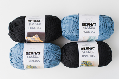 Each ball is a generous 8.8 oz (250 g) and 317 yards (290 m). Bernat Maker Home Dec is available in 16 coordinating colors, including 8 solids and 8 variegated yarns. It’s an easy care yarn that can be machine washed and dried at low temperatures.