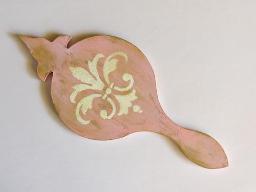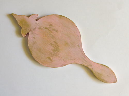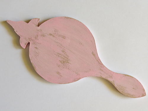 Mix the white and watermelon paint into a soft pink. Add an uneven wash to the wood (front, back, and sides) and allow to dry thoroughly.
