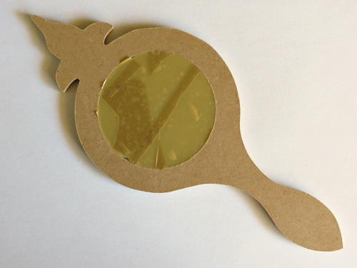 Use white paint and the paint brush to add the stencil design to the back of the mirror. Carefully lift the stenvil and allow the design to dry thoroughly