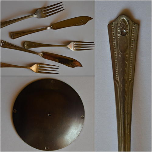 Drill holes with a diameter of 3mm at the end of the handle of each knife and fork.