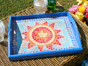 Summertime is the perfect time of year to celebrate and spend time with our loved ones outside. This simple summer craft will show you how to make the perfect tray for days just like this, when entertaining company is key. Follow this simple summer craft tutorial to create your own Mosaic Sun Tray. This tray is the perfect craft for warm days outside, when you need to serve drinks in a hurry. Take the time to create something as pretty as the weather this summer, and follow this summer craft.