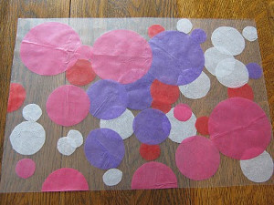 Pink and Purple Place Mats - Just cut out a few pink and purple circles, in the Valentine's Day fashion, and stick them to some contact paper. After a bit of trimming you and your friends will have a functional craft to use during your Galentine's Day party.