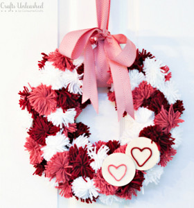 Valentine's Day Pom Pom Wreath - This Valentine's Day, people aren't just wearing their hearts on their sleeves--they're wearing them on their doors, too! Show off the sweet, whimsical love you've got inside by displaying a homemade Valentine's Day Pom Pom Wreath.