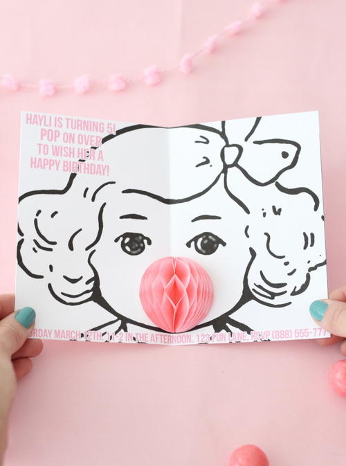 Bubble Gum DIY Pop-Up Invitations - Add a pop of color to your Galentine's Day party invitations with these party invitation templates. These adorable Bubble Gum DIY Pop-Up Invitations turn simple patterns into super designs!