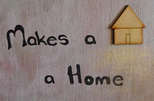 Use a pencil to write the words "Makes a" in the first line and "a Home" in the second line. Use the Pentel pen to draw over the pencil lines.