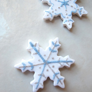 - Place your snowflake on your tile and bake it as directed above. Once baked and cooled, decorate it with blue and silver 3D paint and brush it with glitter. Finally, attach it to silver 18-gauge wire.