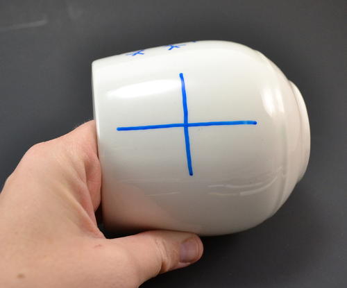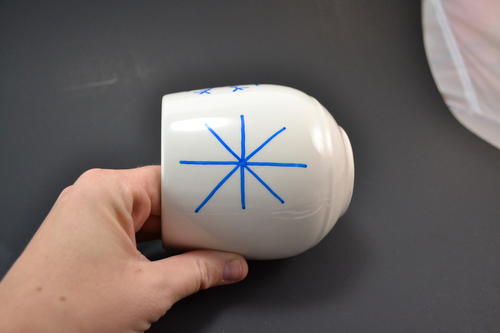 To start making your flakes, draw a plus sign on your mug. The lines don't have to be the same length, but you don't want them to be crazy different.